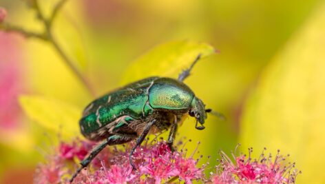 سوسک علفخوار روی گل صورتی