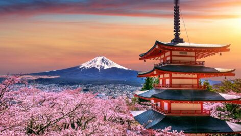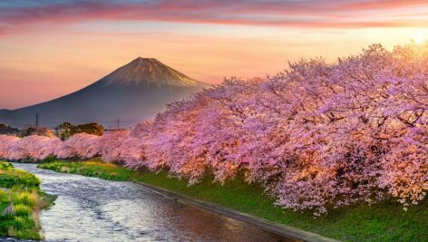 شکوفههای گیلاس کوه فوجی در بهار
