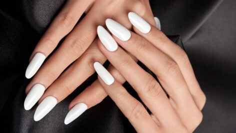 دست های زن با ناخن های بلند سفید