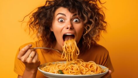 دختر با بشقاب اسپاگتی – پرخوری