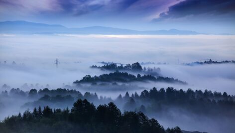 جنگل در آغوش مه سپیدهدم