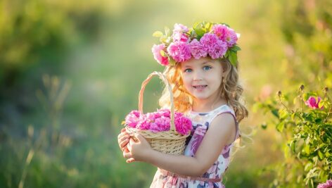 دختر کوچک با پس زمینه گل