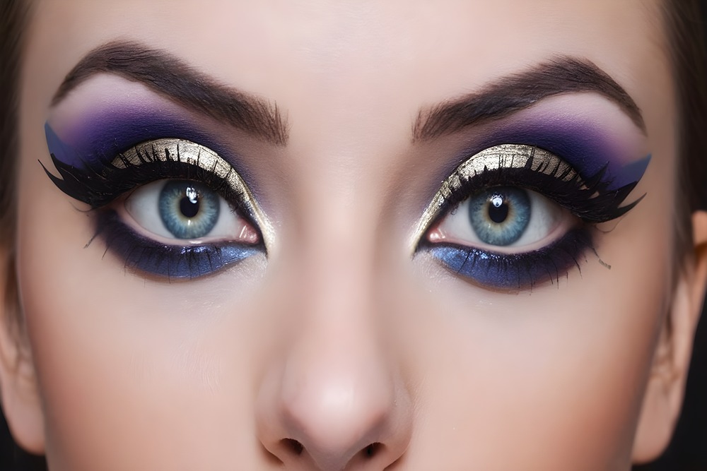 آرایش چشم با سایه بنفش و آبی