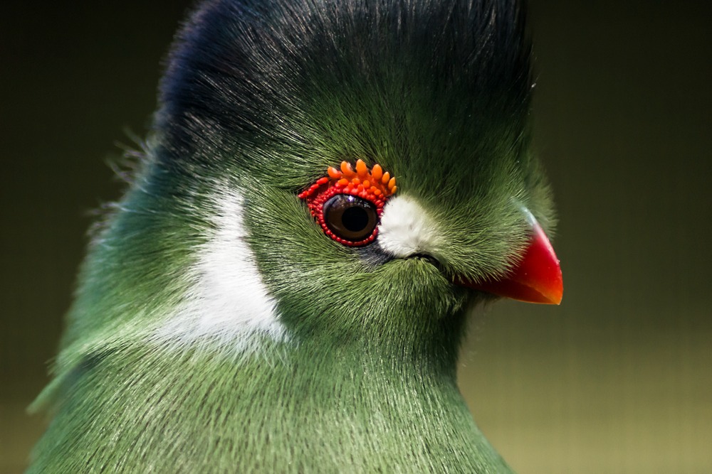 تصویر نزدیک توراکو پرنده مرغ بهشتی سبز