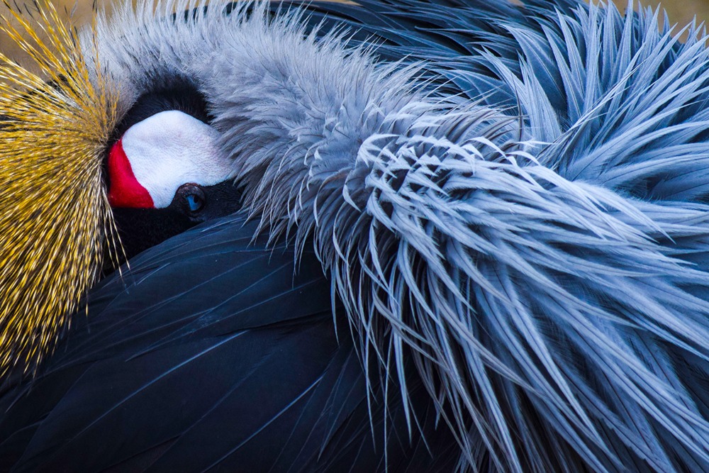 تصویر نزدیک درنای تاجدار خاکستری