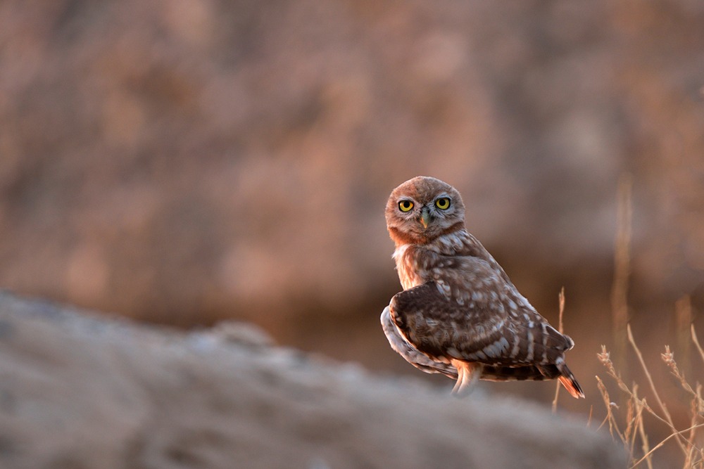 جغد کوچک نشسته روی صخره سنگی