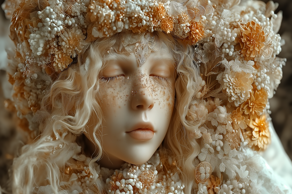 دختر با موهای بلوند موجدار و تاج گل