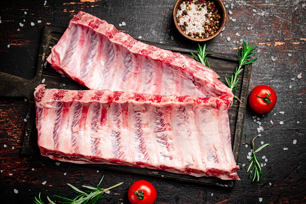 دنده خام با ادویه روی تخته چوبی