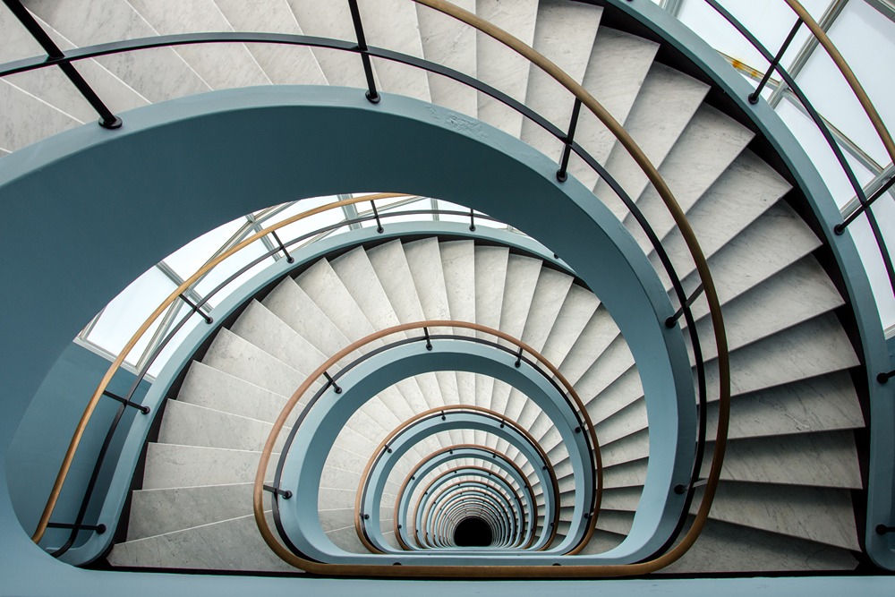 راه پله مارپیچ ساختمان با زاویه دید بالا