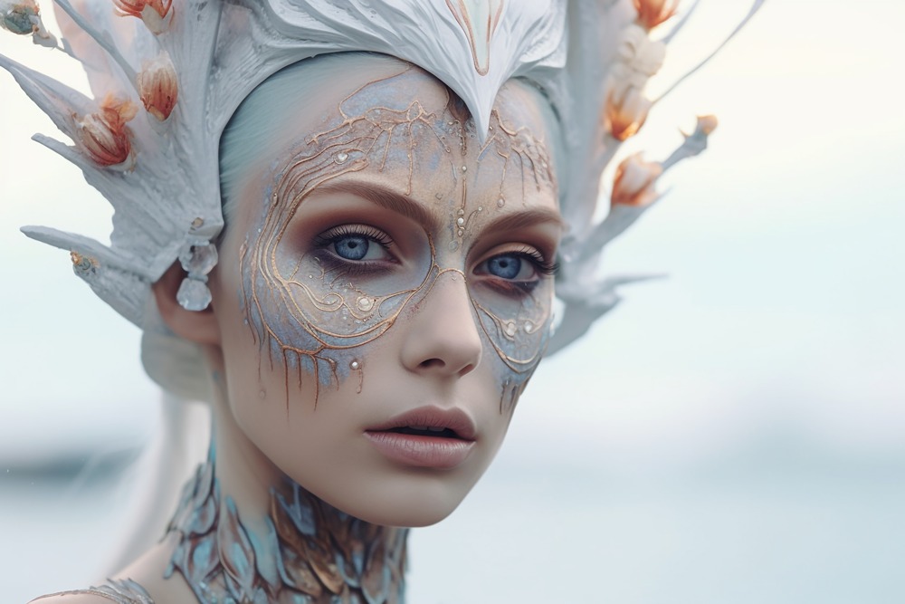 زنی با چهره نقاشی شده شبیه پری دریایی