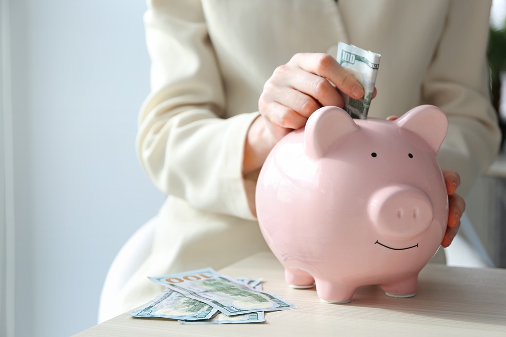 زن در حال گذاشتن پول در قلک