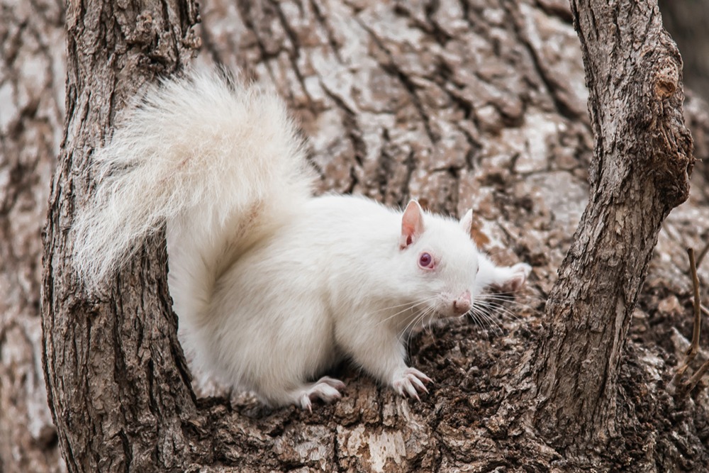 سنجاب سفید روی تنه درخت