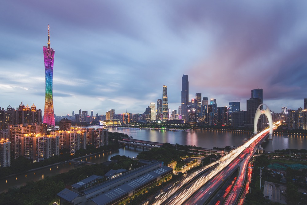 شهر روشن در برابر آسمان شب