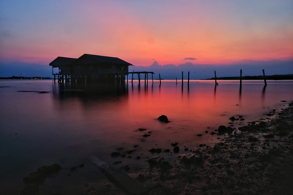 غروب خورشید خانه ییلاقی