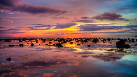 غروب رنگارنگ چمنزار گل های بنفش در کوه