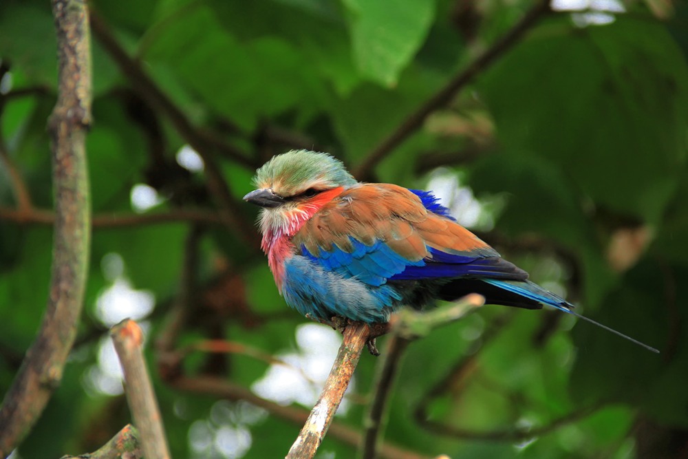 غلتکی با سینه یاس بنفش روی شاخه درخت