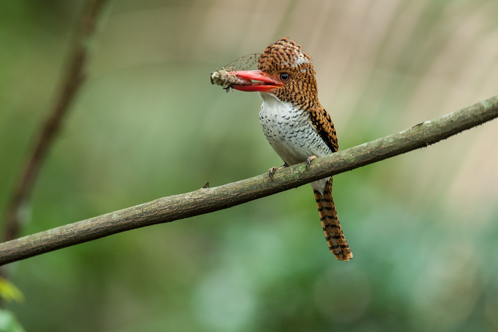 ماهیخورک نواری حشره در منقار