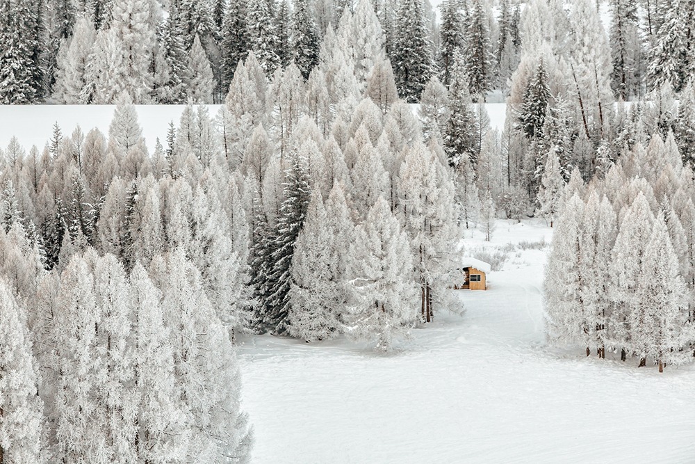 مزرعه درختان پوشیده از برف