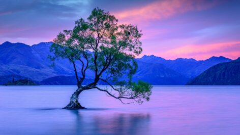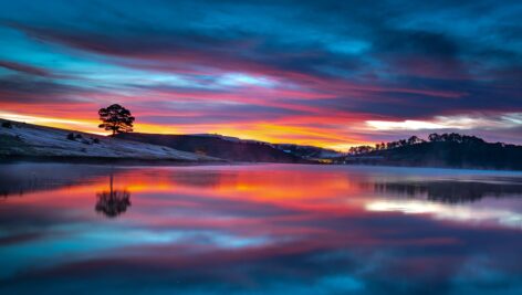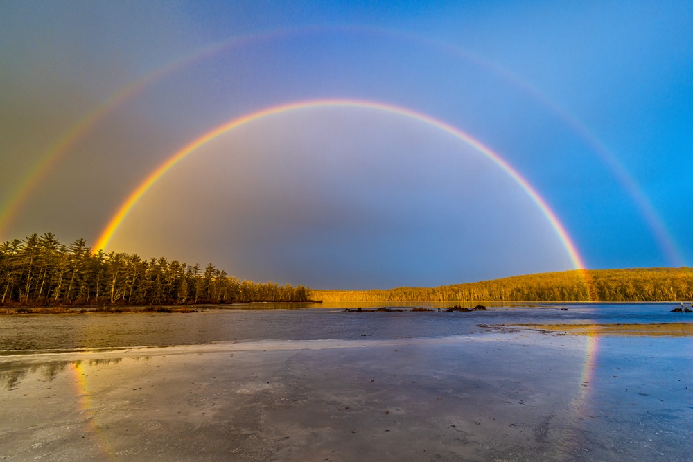 منظره رنگینکمان با انعکاس در دریاچه یخزده