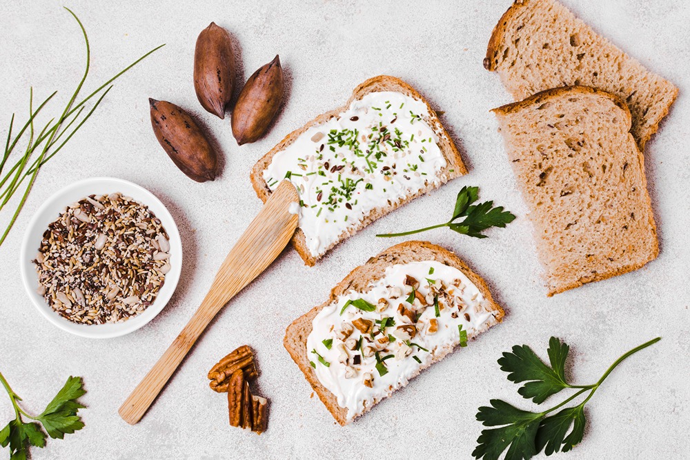 نان تست با پنیر و گردو پهن شده