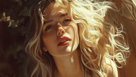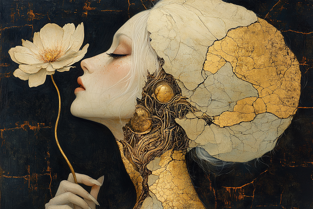 نقاشی رنگ روغن یک زن با رگه های طلایی