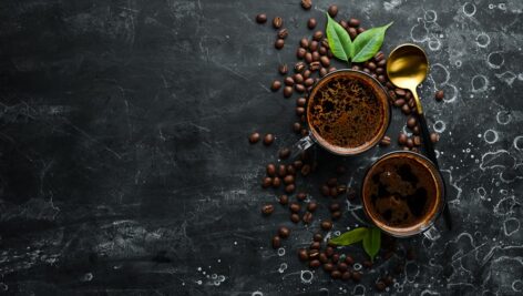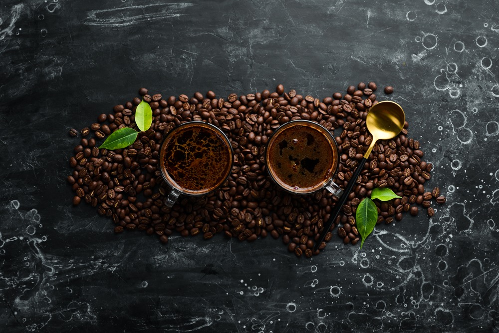 نمای بالا از دو فنجان قهوه معطر