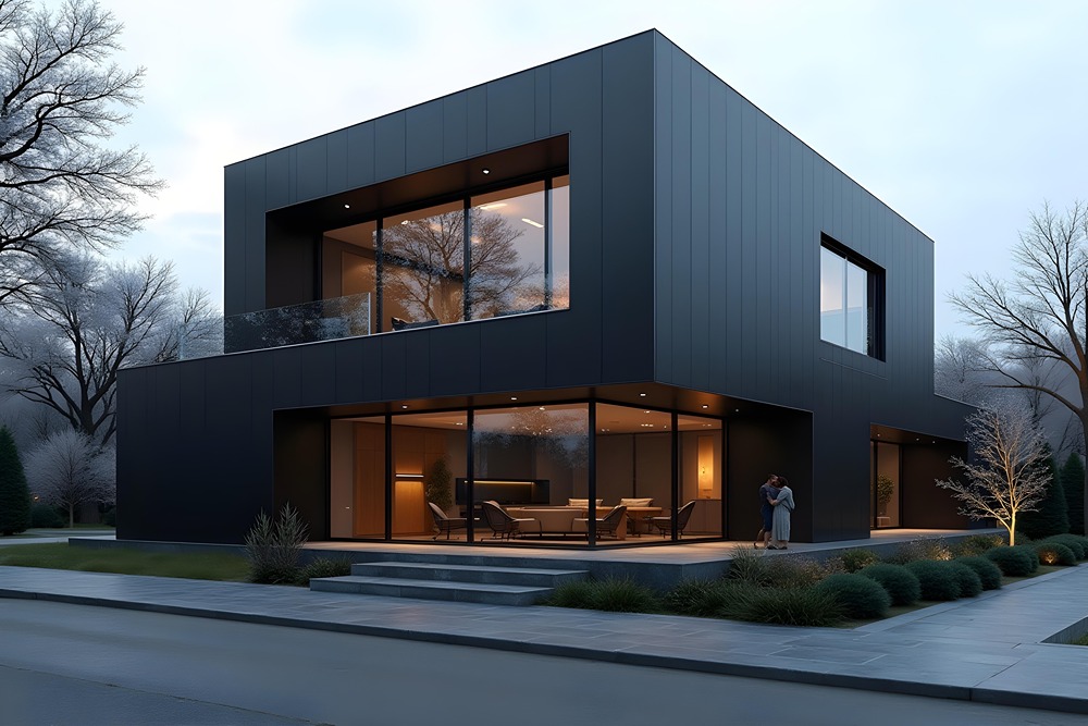 ویلا مدرن با پنجرههای بزرگ سرتاسری
