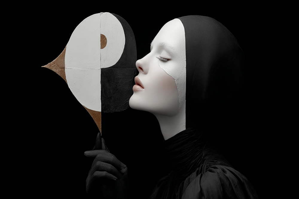 پرتره تئاتری زن پس زمینه سیاه