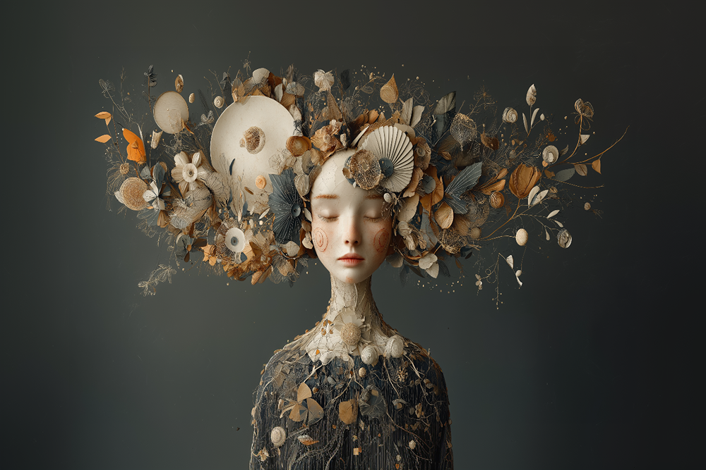 پرتره هنری با الهام از طبیعت و عناصر ارگانیک