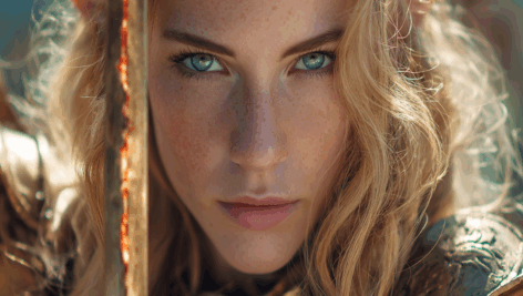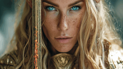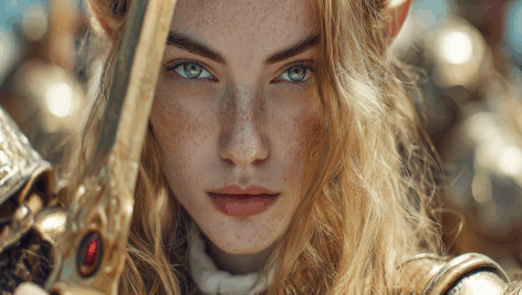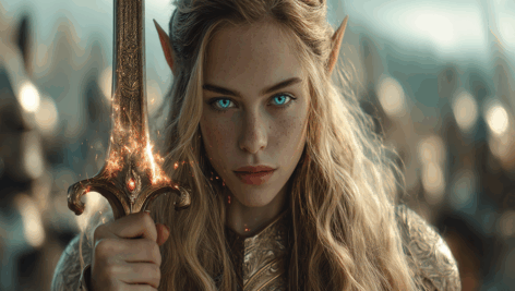 پرتره پسر فانتزی حماسی با شمشیر طلایی