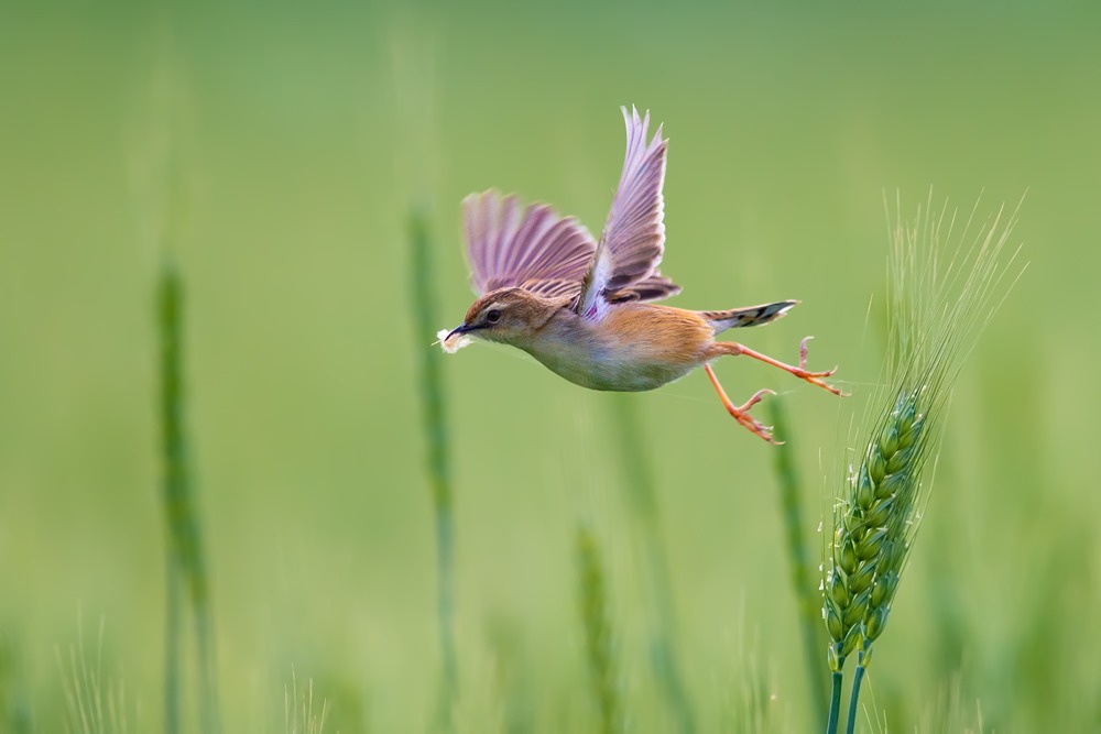 پرنده سیستیکولای زیتینگ در حال پرواز