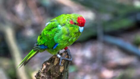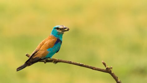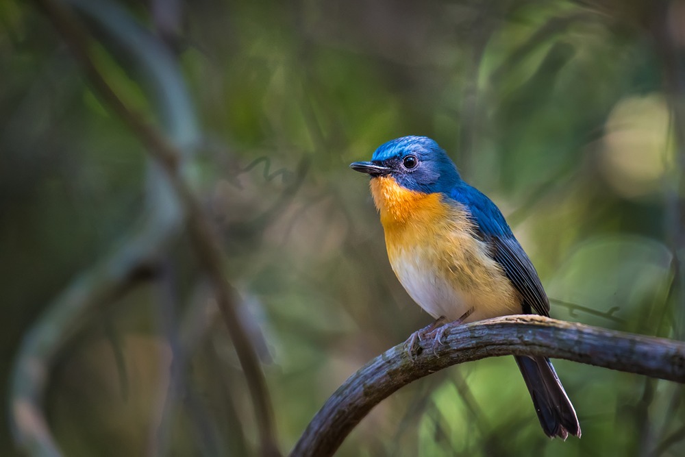 پرنده سینهسرخ آبی با پرهای آبی و نارنجی