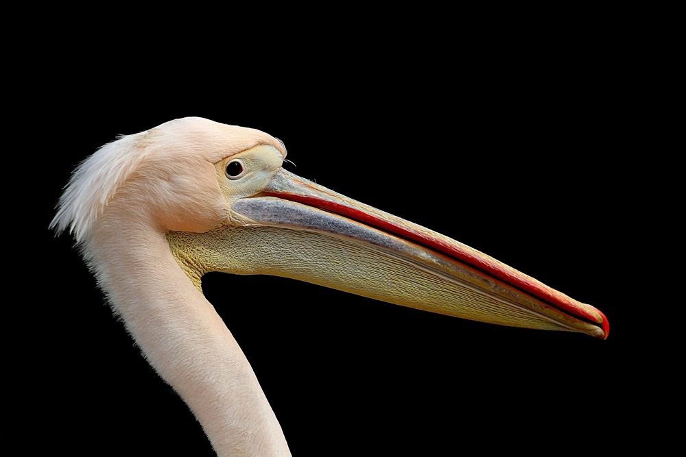 پلیکان سفید بزرگ پس زمینه مشکی