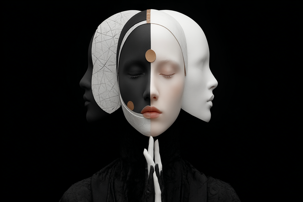 چهره سه نمای گرافیکی زن- سیاه و سفید