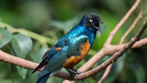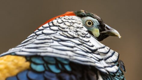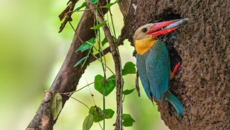 کلوزآپ پرنده مرغ ماهیخوار خالدار در حال پرواز